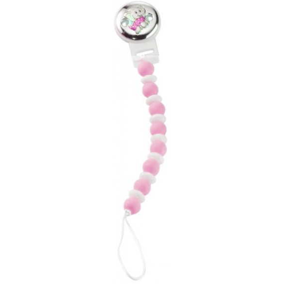 Broche Chupete de Silicona con Placa de Plata Miro-Plata 999 modelo "Elefantino". Con práctico clip para sujetar la cadena a tu bebé para garantizar una higiene.
