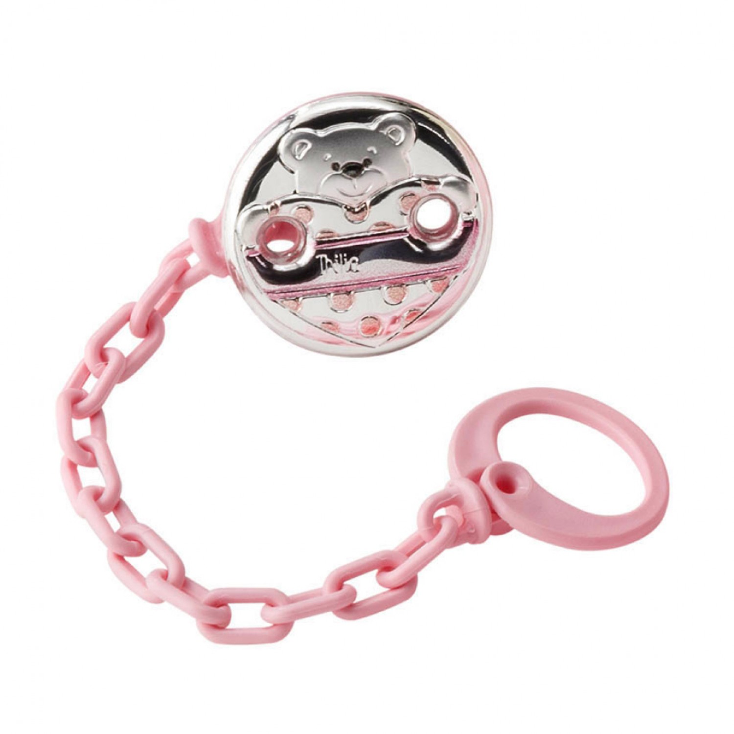 Diseñado para un acceso rápido al chupete, evitando que se caiga y se ensucie. La cadena está equipada con un clip que le permite sujetar el chupete a la ropa del bebé. Modo de uso: el clip debe colocarse exclusivamente en la ropa y nunca debe usarse cuando el bebé está en la cuna o en el parque.