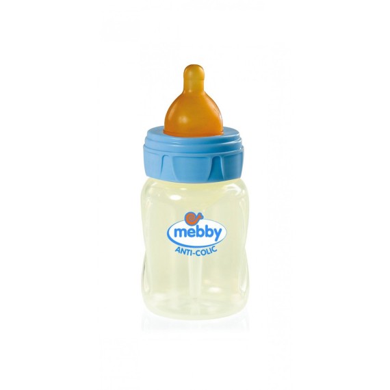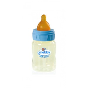 Biberón Mebby Step 1 + 2 de Goma Anticólico, con sistema de doble válvula: ¡previene las infecciones de oído y los cólicos! De hecho, en los biberones tradicionales, la succión del bebé produce un espacio de aire que lo obliga a succionar con fuerza, lo que lo fuerza y produce una presión negativa dentro de los oídos. La presión negativa creada dentro de los oídos puede causar dolorosas infecciones de oído. En los biberones tradicionales, el vacío que provoca la succión del bebé se compensa con el aire que entra en el biberón, en forma de burbujas. Este último, ingerido con leche, puede provocar cólicos. Gracias al sistema patentado de doble válvula, los biberones Mebby Step 1 + 2 son la solución a este doble problema. También están íntegramente diseñados y fabricados en Italia y están hechos de polipropileno (PP), un material que no contiene Bisfenol A.