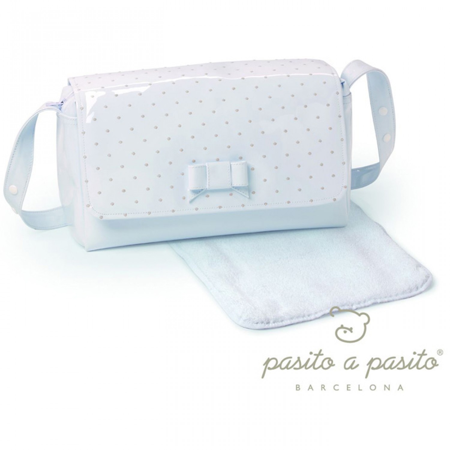 Bolso + cambiador Pasito a Pasito Topito de ecopiel lunares beige