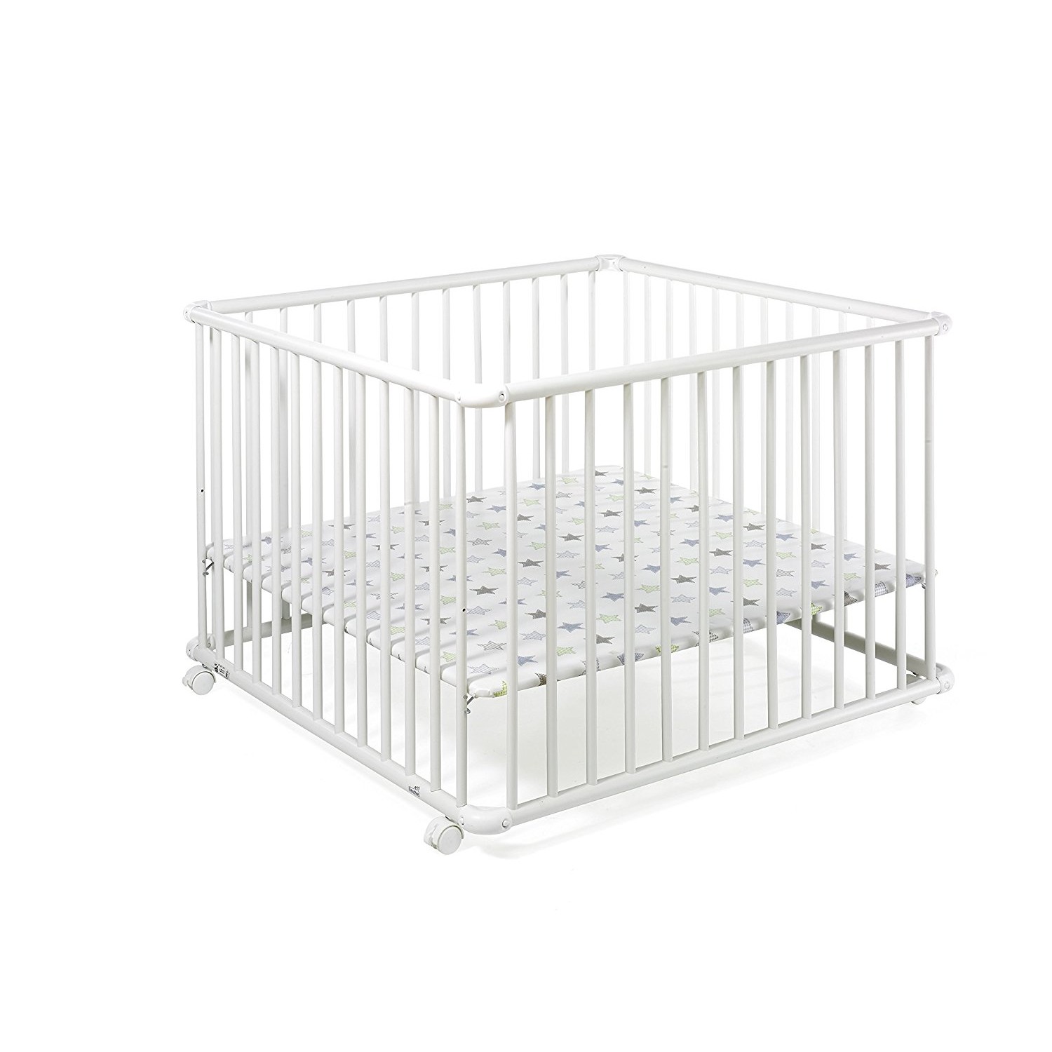 El parque Belami de Geuther es perfecto para mantener a tu hijo siempre a tu lado, ya que el parque está equipado con cuatro ruedas especiales con cerradura para llevarlo a cualquier lugar de la casa. Gracias a su bajo peso, debido a su estructura ligera, ¡moverse de una habitación a otra no será nada agotador!