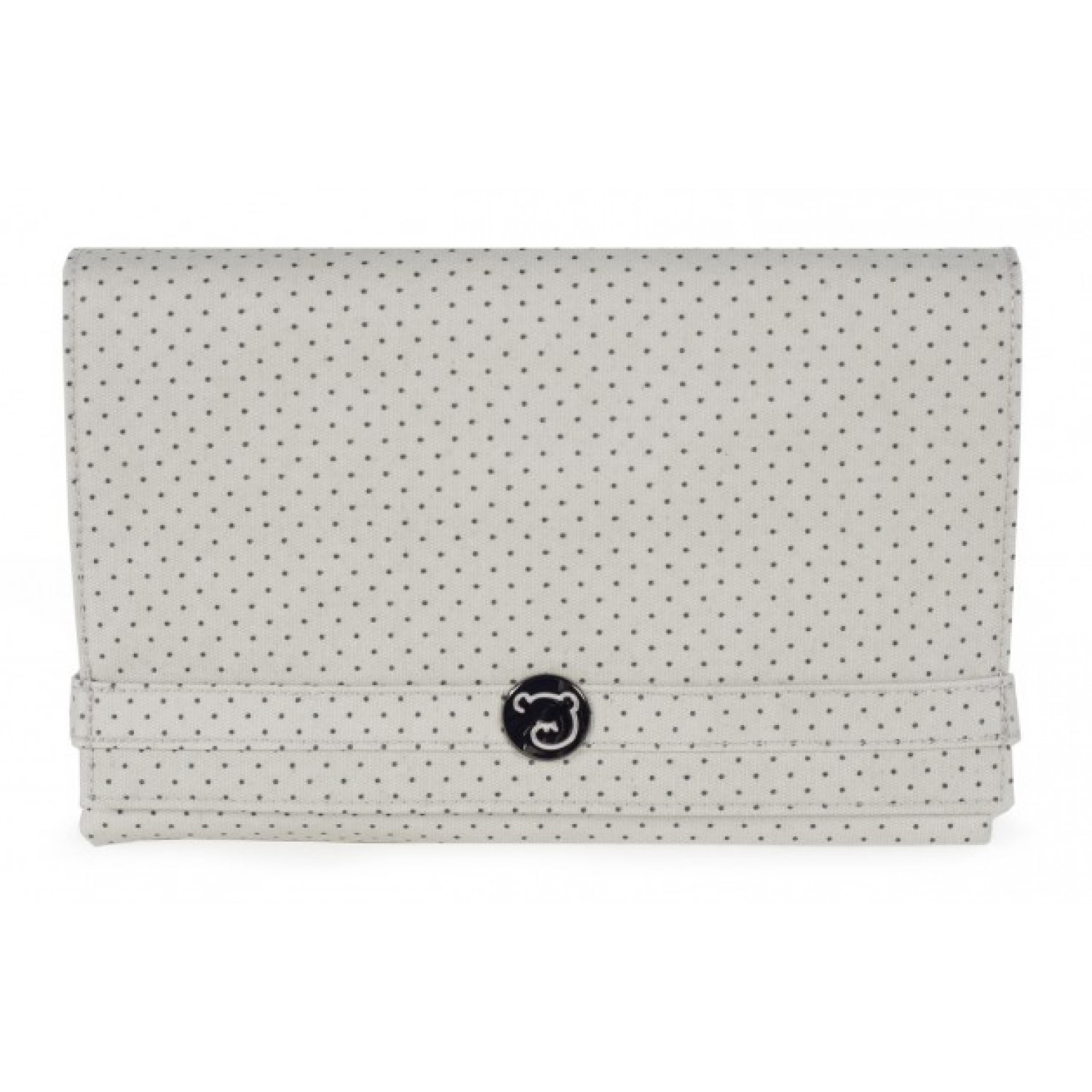 Cambiador de la nueva colección Chloe de Pasito a Pasito ideal para llevar en el bolso gracias a su tamaño compacto. Fabricado en loneta de algodón plastificada con topito gris.
