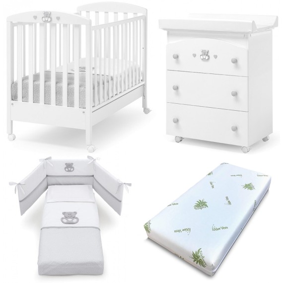 El Edredón Removible hará más elegante tu cuna con los refinados lazos que la unirán a la estructura y los lindos ositos bordados que harán compañía a tu pequeño durante los sueños más bellos.