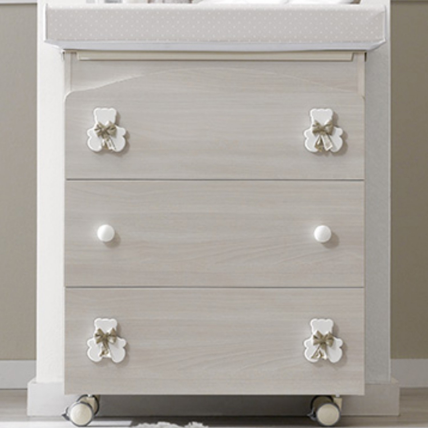 L’elegante bagnetto fasciatoio Erbesi, dotato di tre spaziosi cassetti per riporre tutto ciò che vuoi, è l’ideale per la cura e l’igiene del bimbo grazie alla vaschetta per il bagnetto anatomica antiscivolo e per merito delle cerniere per il top anticaduta per tenere il tuo bambino nella sicurezza completa; la struttura è realizzata in truciolare certificato classe E1 a bassa emissione di formaldeide, e rivestita in PVC facilmente lavabile.