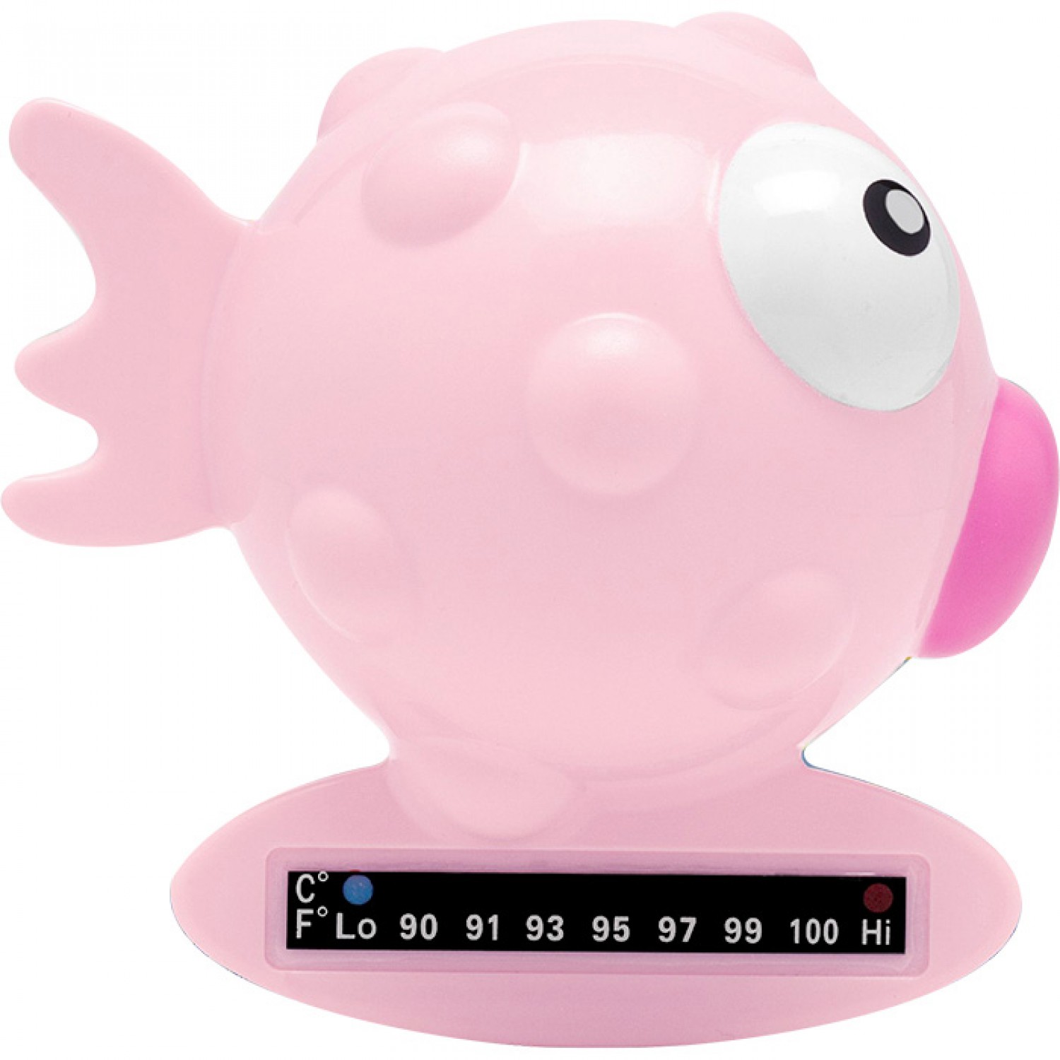 Este termómetro de baño, con forma de pez globo, le permite comprobar la temperatura correcta del agua del baño de su bebé