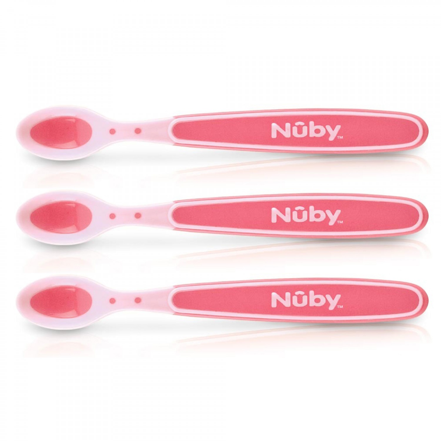 Las suaves cucharas termosensibles de Nuby son la herramienta ideal para darle a tu bebé alimentos sólidos. No solo son suaves al paladar, sino que ayudan a saber cuándo la comida de tu pequeño está demasiado caliente.