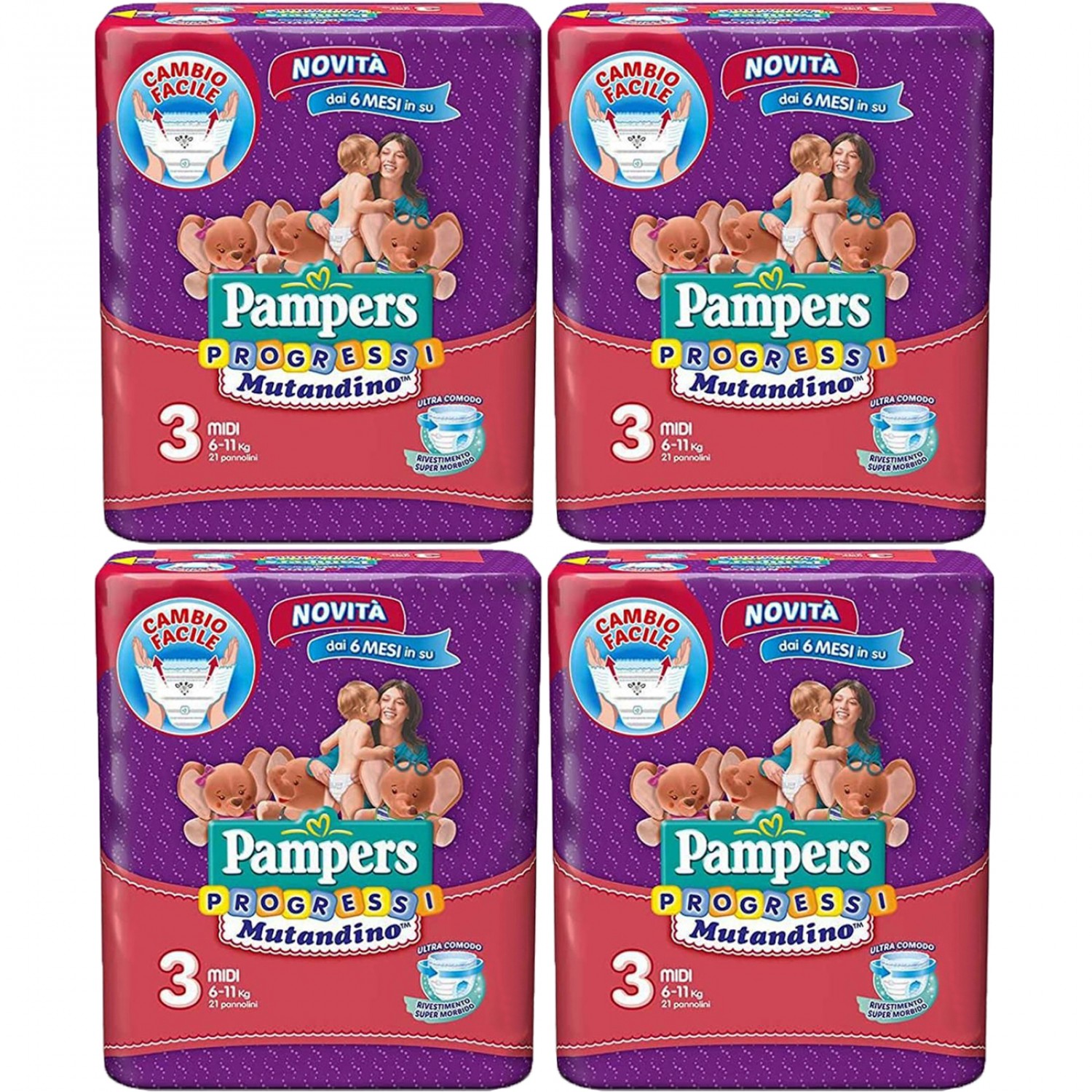 Pampers Progressi Mutandino es el nuevo pañal panty que asegura un cambio rápido y fácil y un ajuste inigualable, combinado con la parte superior seca de la línea Progressi. Se lleva como una braguita y se puede quitar rápidamente gracias a la práctica abertura lateral desprendible.