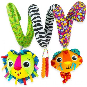 Juguete en espiral para colocar en cunas, huevos, cochecitos, cochecitos y mucho más. sus colores vivos, los diferentes tejidos y los simpáticos personajes harán que los viajes y los paseos sean placenteros. 0m +.