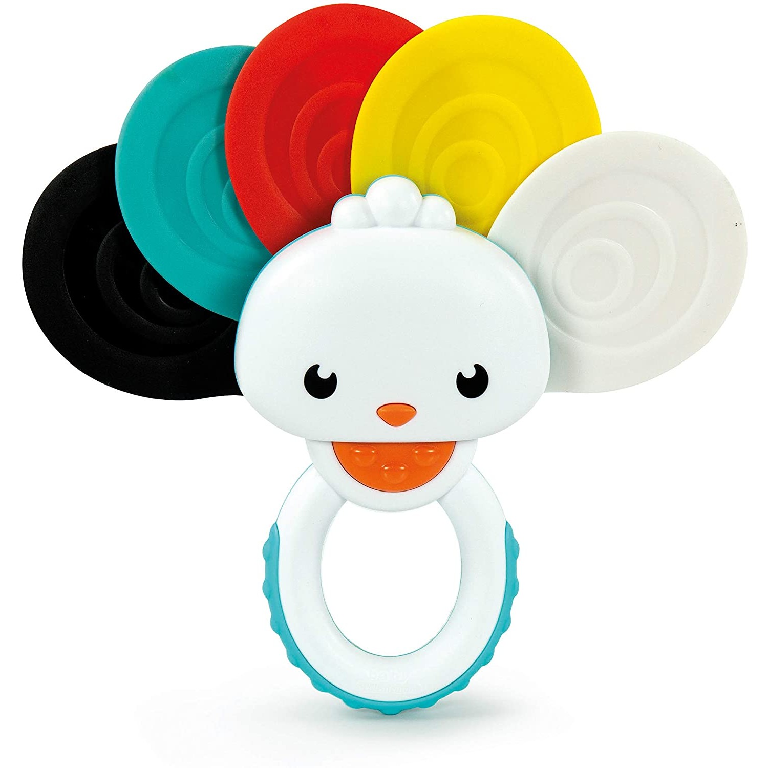 - Un dulce sonajero con forma de pavo real perfecto para estimular la vista de los bebés en los primeros meses de vida.