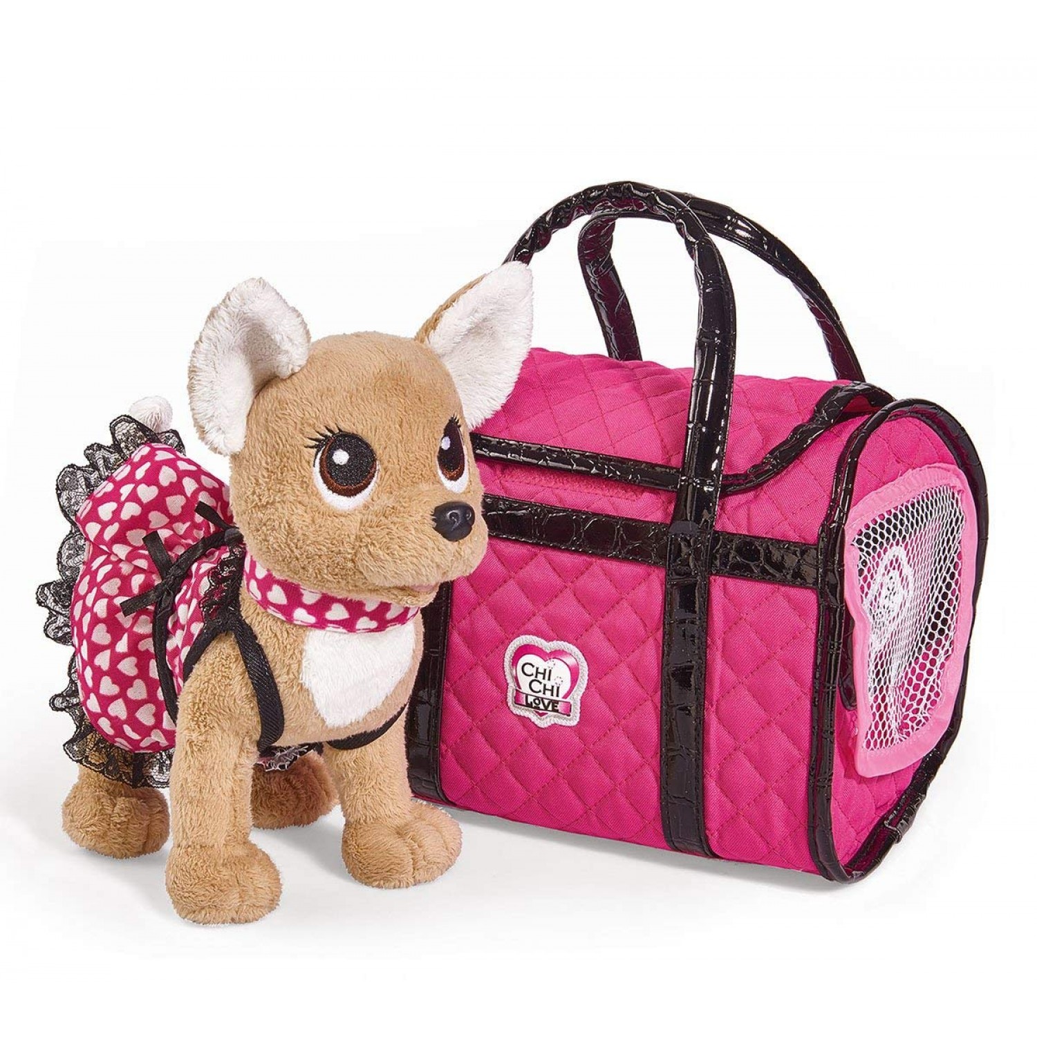 Perrito chi chi love con bolso y collar a juego. su vestido brilla en la oscuridad. incluye mantita.