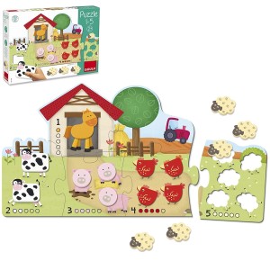 Puzzle de gran tamaño, de 6 piezas, con el que los peques podrán aprender a contar junto a los divertidos animalitos de la granja. El puzzle es de cartón y cuenta con 15 animalitos que tendrás que encajar en los espacios correspondientes. Gracias al tamaño y al grosor de las piezas, los niños podrán manipular y encajarlas fácilmente. Edad recomendada a partir de 2 años.Pesos y medidas:- Peso: 0,62
