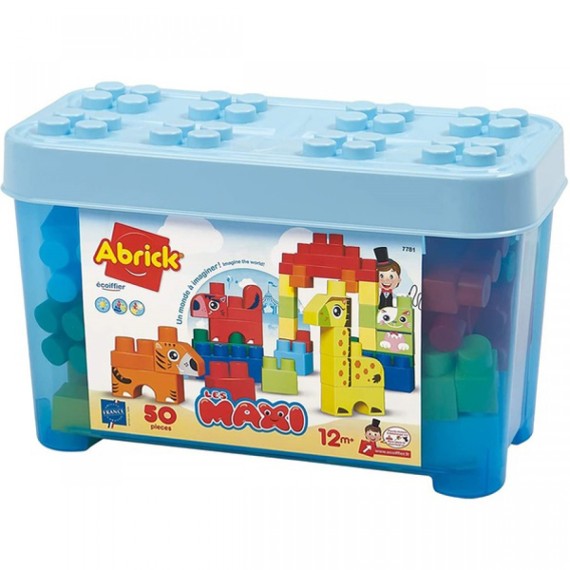 Una caja útil y divertida, que contiene 50 piezas de maxi ladrillos Abrick en colores surtidos.