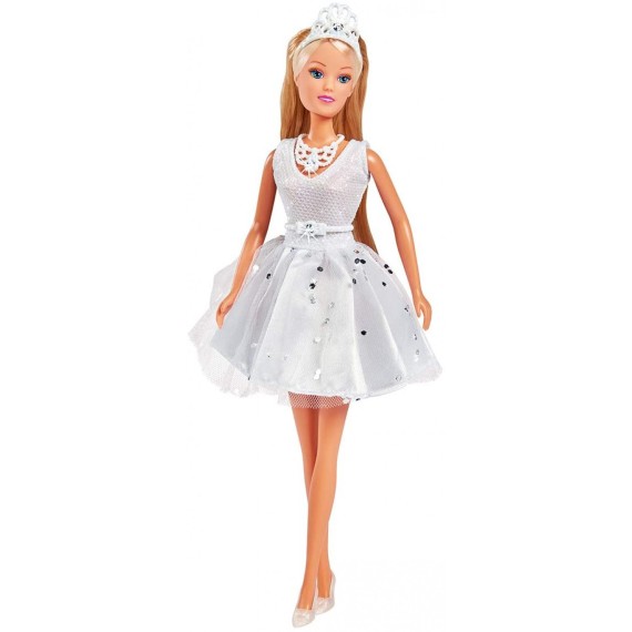 Steffi Love luce un hermoso vestido blanco como una verdadera Princesa Incluidos accesorios creados con cristales Swarovski Desde 3 años