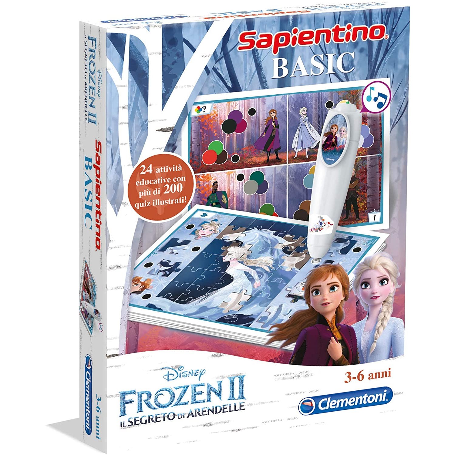 - Un juego de cartas con 24 actividades que ofrecen un completo y efectivo camino educativo para divertirse en compañía de los personajes de Disney Frozen 2