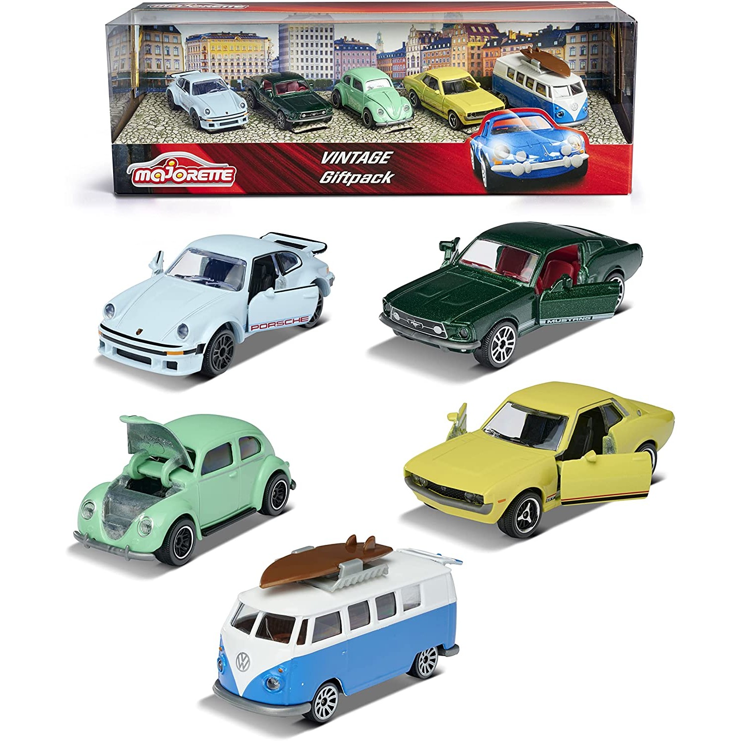 - La caja de regalo Majorette Vintage Cars consta de cinco coches de juguete de rueda libre de alta calidad, que se reproducen a partir de los mejores viejos miedos de la historia del automóvil.