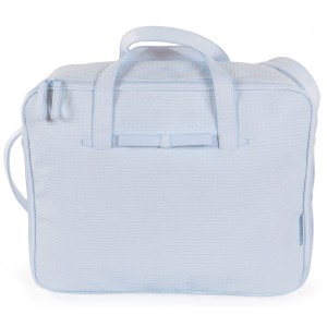 Gracias a su amplio tamaño rectangular y práctica apertura tendrás cubiertas todas vuestras necesidades. Lleva asa ajustable. Forro interior con gomas para sujetar la ropita. Lavable a mano y a máquina.