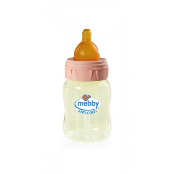 Biberón Mebby Step 1 + 2 de Goma Anticólico, con sistema de doble válvula: ¡previene las infecciones de oído y los cólicos! De hecho, en los biberones tradicionales, la succión del bebé produce un espacio de aire que lo obliga a succionar con fuerza, lo que lo fuerza y produce una presión negativa dentro de los oídos. La presión negativa creada dentro de los oídos puede causar dolorosas infecciones de oído. En los biberones tradicionales, el vacío que provoca la succión del bebé se compensa con el aire que entra en el biberón, en forma de burbujas. Este último, ingerido con leche, puede provocar cólicos. Gracias al sistema patentado de doble válvula, los biberones Mebby Step 1 + 2 son la solución a este doble problema. También están íntegramente diseñados y fabricados en Italia y están hechos de polipropileno (PP), un material que no contiene Bisfenol A.