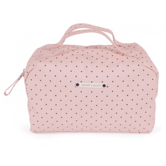 Neceser vanity de la colección Triana de la marca Pasito a Pasito. Es un complemento perfecto para llevar todos los productos de aseo de nuestros bebés o de la familia. Incluye asa enteriza en la parte superior.