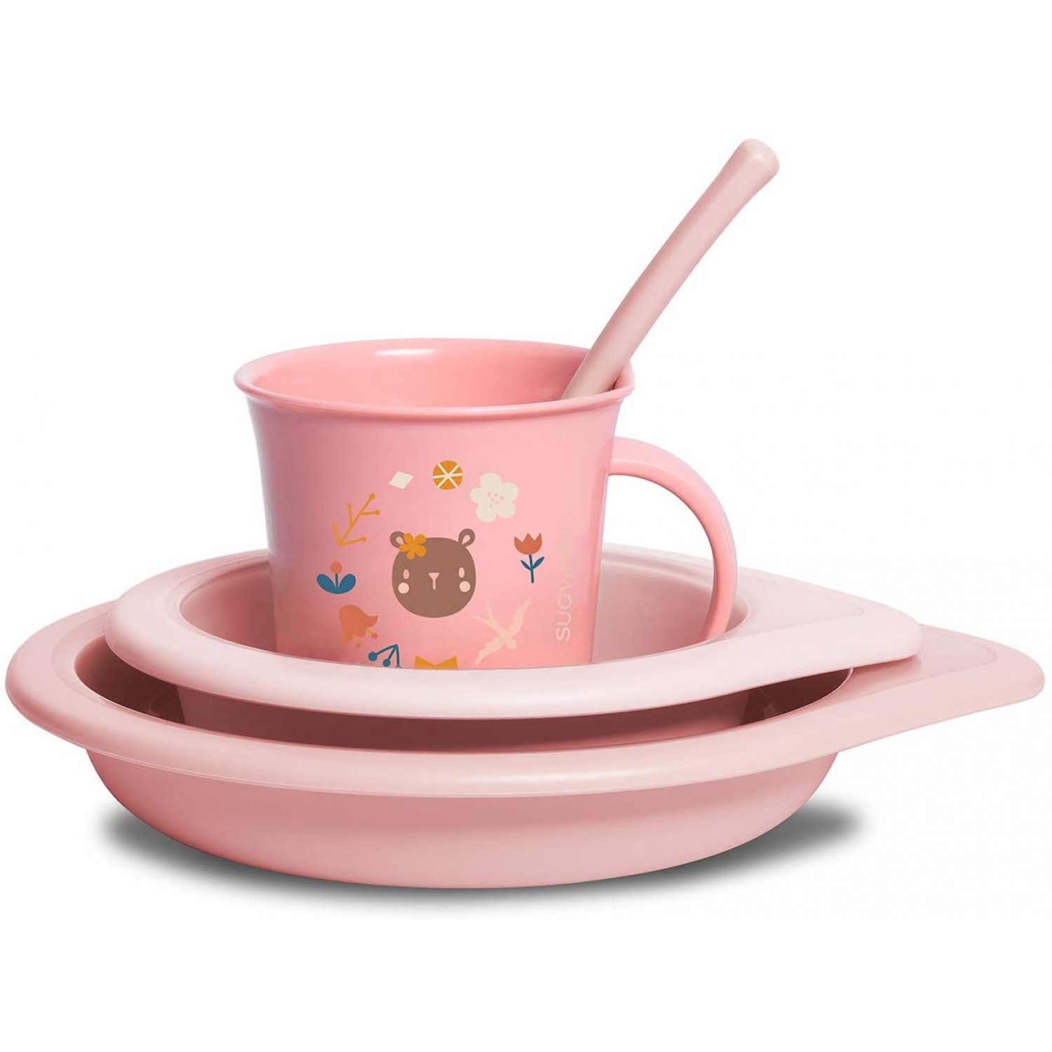 Juego de vajilla diseñado para que los bebés a partir de los 6 meses aprendan a comer y beber por sí solos.
