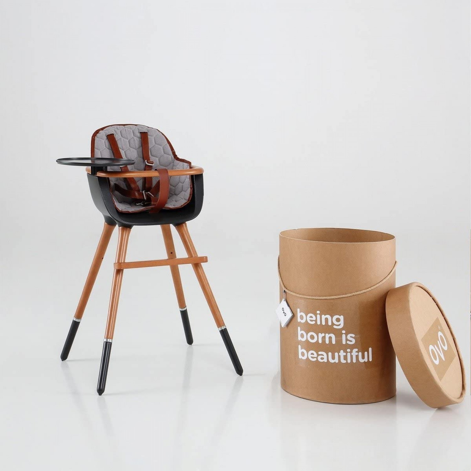 Fabricado en material resistente al lavado. La tapicería City opcional, en lona gris con ecopiel marrón, es uno de los modelos más elegantes para nuestro OVO. Fabricado en lona resistente al lavado. Su acolchado interior con una forma hexagonal muy original hace más cómoda la estancia del niño en la trona. Se puede combinar con cualquier arnés de seguridad.